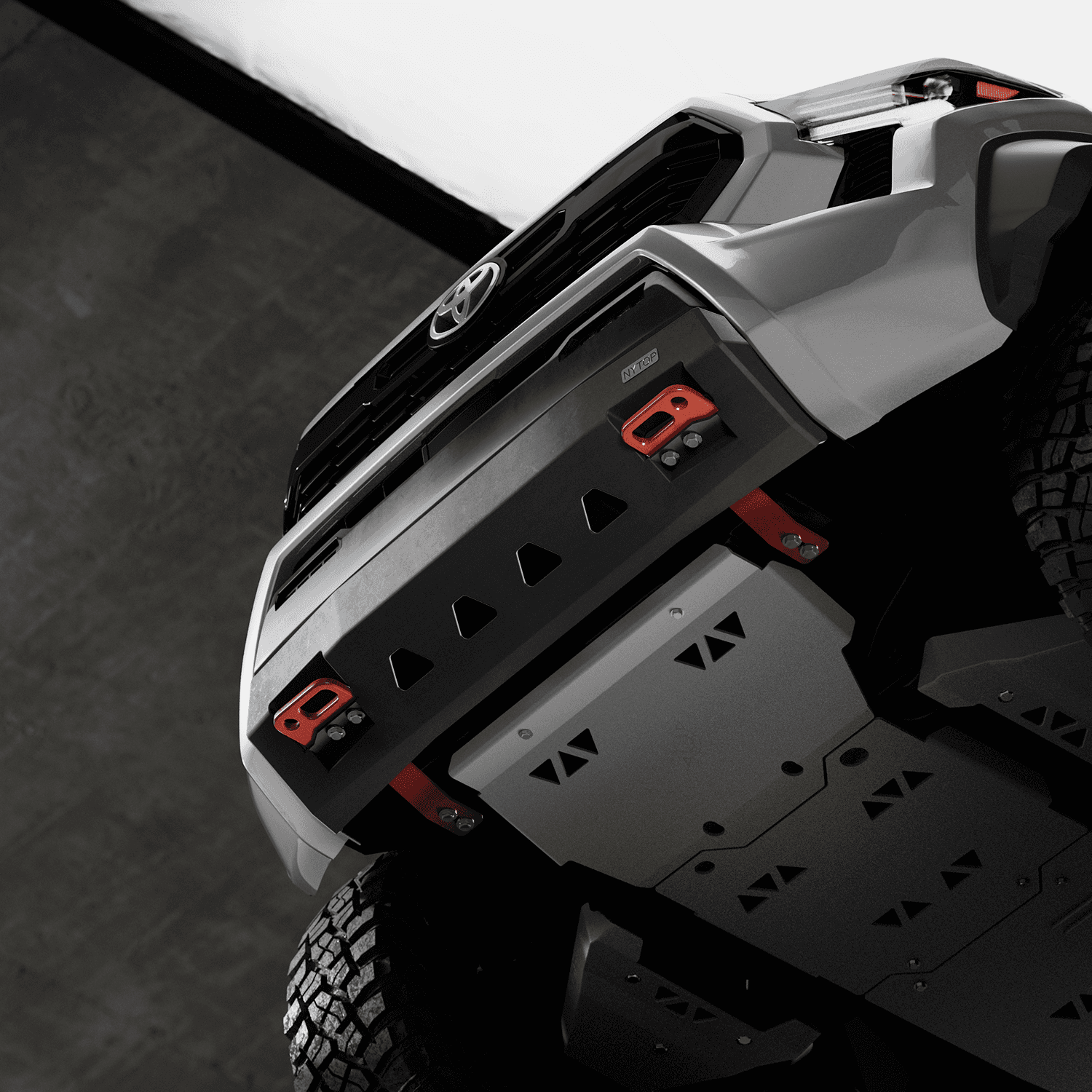 2024-Current (4th Gen) Toyota Tacoma Front Hybrid Bumper. Comes with your choice of red/black front recovery points. Fits all trim levels.